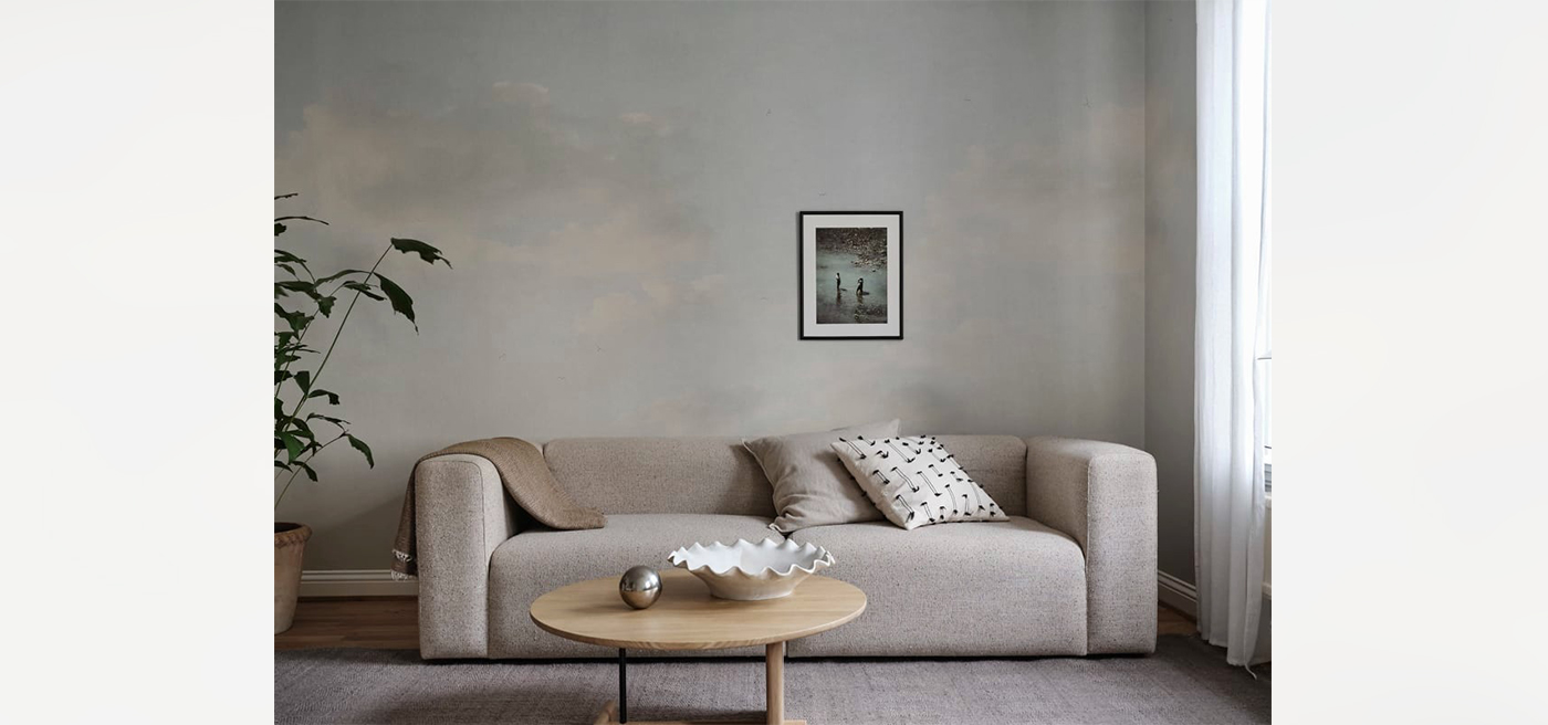 Studying the sky is like drifting away from reality, pausing to contemplate the course of nature. In the distance, the peregrine falcon hovers weightlessly across the sky over the coast of Møn. The color scheme Moln (Swedish for "cloud") Misty Blue has blue skies with soft, light pink clouds.