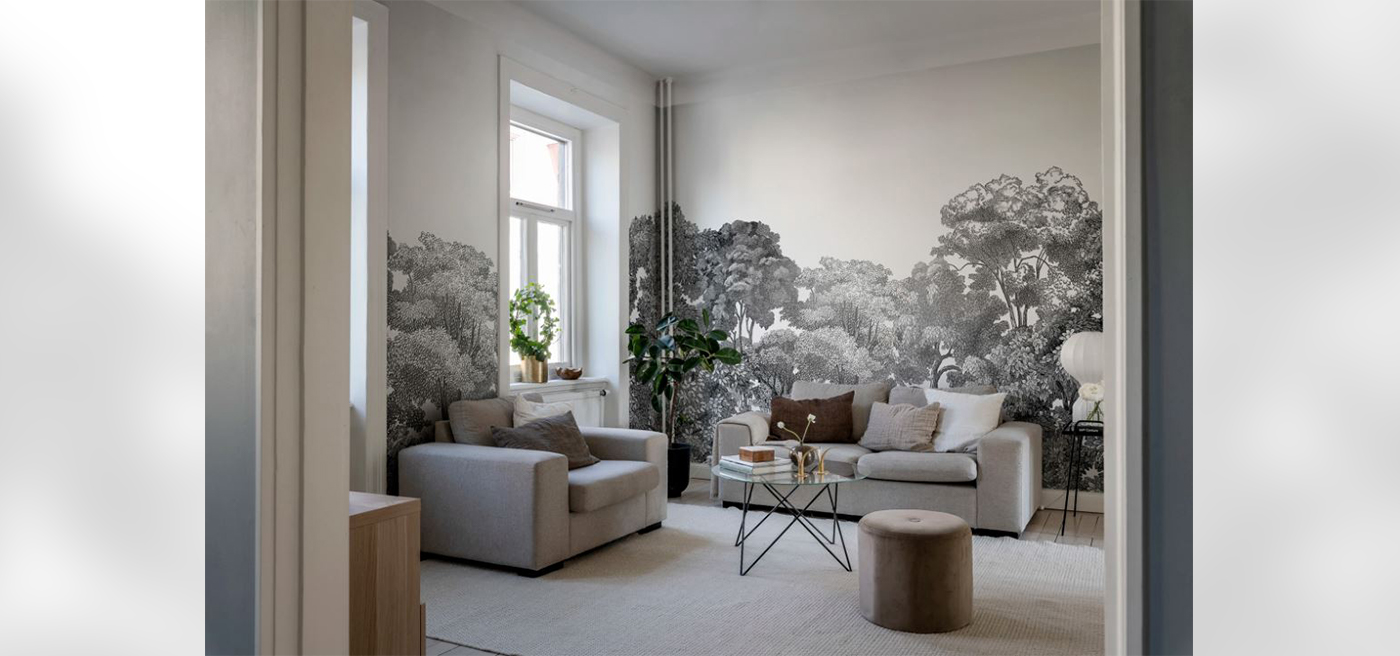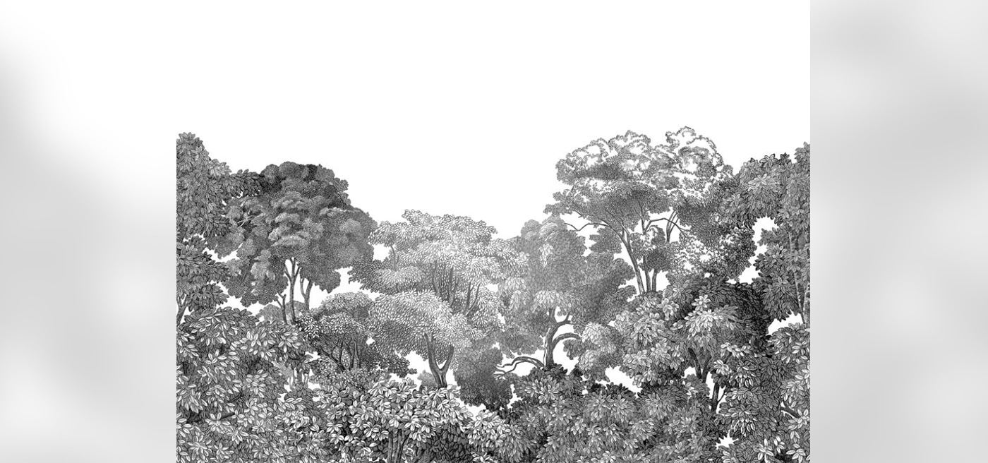 There is something indescribably beautiful about a classic toile pattern based on small hand-drawn strokes painting up romantic scenes usually consisting of lovebirds talking in the shade. We wanted to create a modern toile but maintain the traditional craftsmanship. This inviting, and a little mysterious, forest wallpaper is based on several toile designs where we only picked the trees from the romantic sceneries. If you want to fill the woods with a love message of your own, you can always use our design studio to carve your beloved's name in one of the tree trunks.