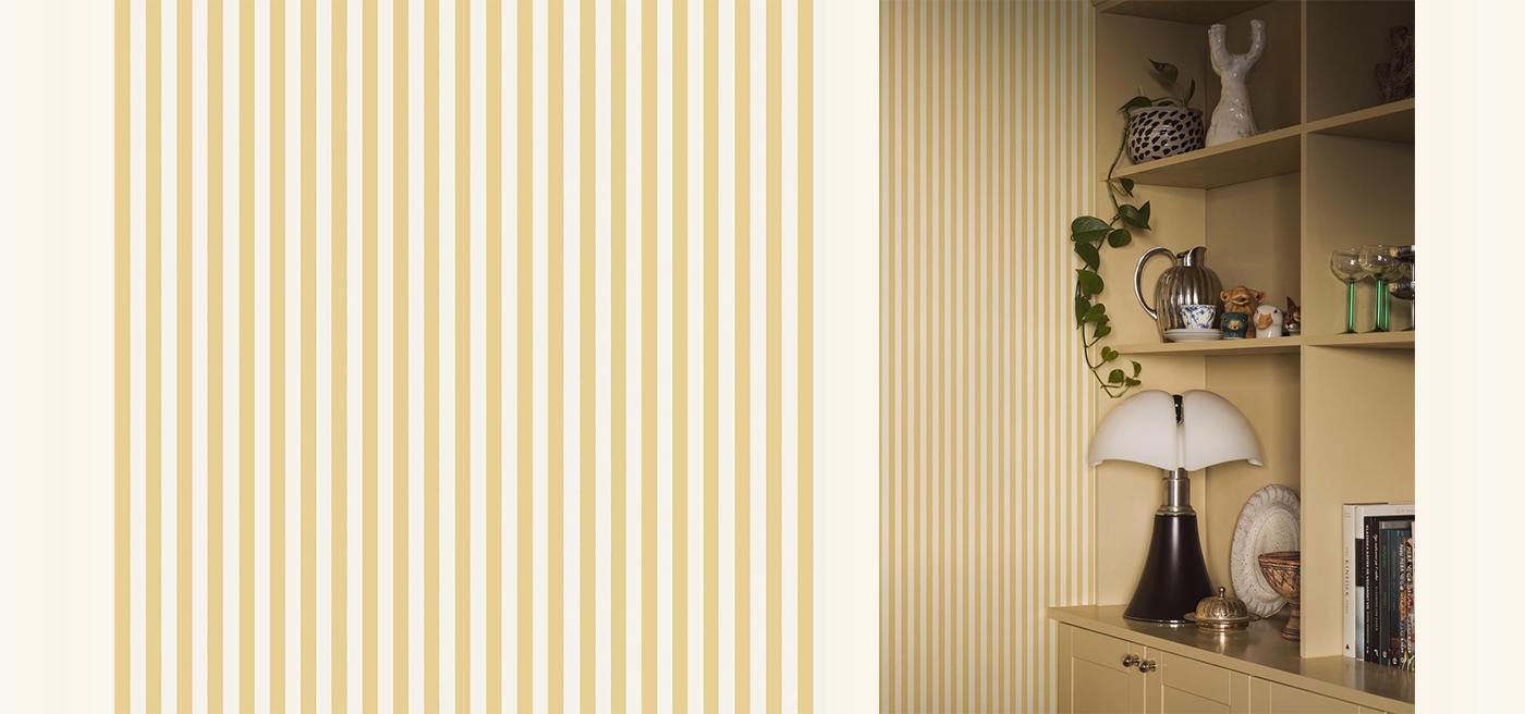Mölle Stripe is a striped wallpaper inspired by the classic Swedish seaside town of Mölle in Skåne – known for its free-spirited bathing culture at the turn of the 20th century. With timeless design and a hand-drawn feel, this wallpaper brings an airy, harmonious, and cosy atmosphere to any room and style.