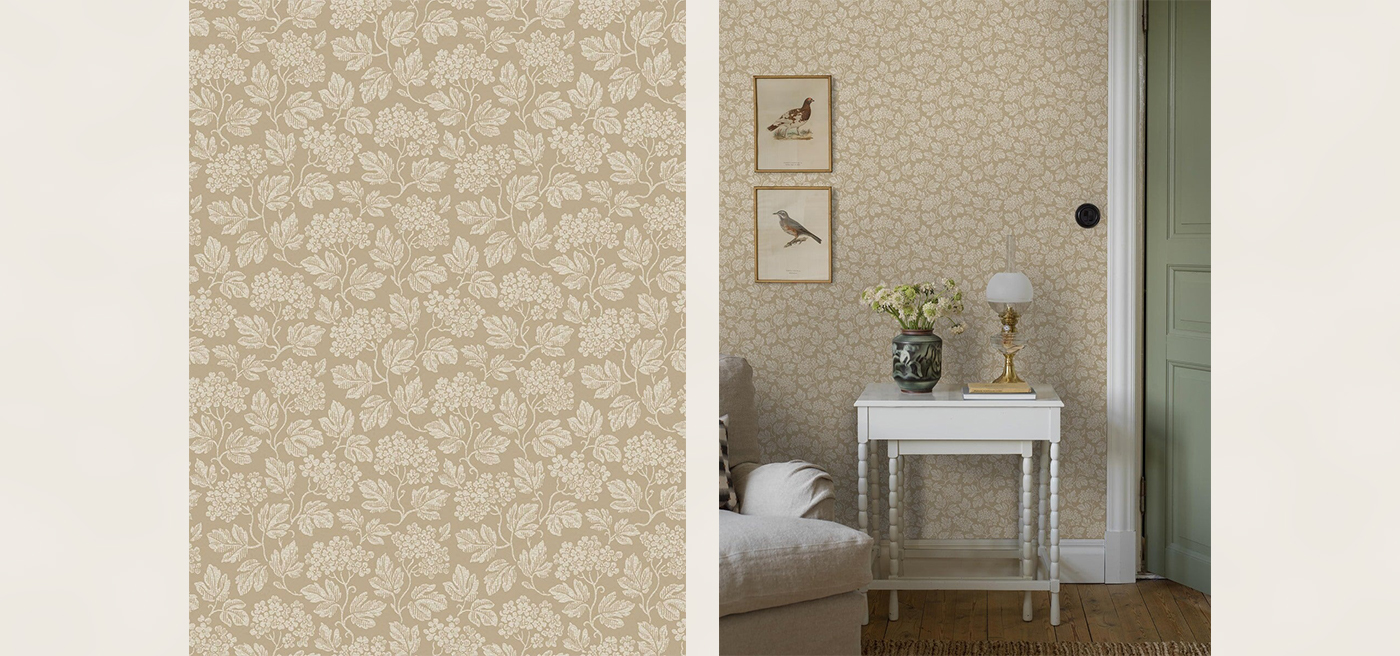 When spring is at its most beautiful, the hawthorn shrub bursts into bloom. And this enduring garden favourite has inspired the dense foliage design of our Hagtorn wallpaper.