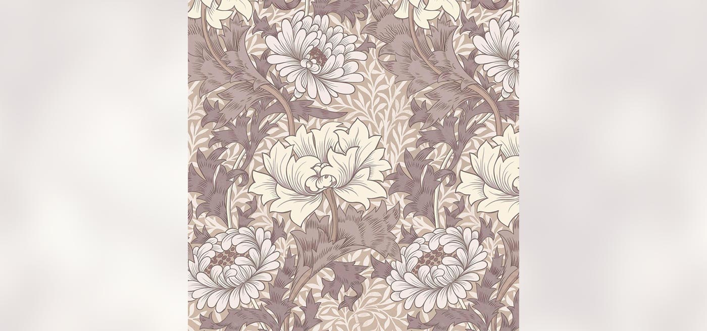 With larger-than-life climbing chrysanthemum blooms and winding foliage, our modern retelling of a storied classic sees William Morris’ ‘Chrysanthemum’ print transformed into modern surrealism.
