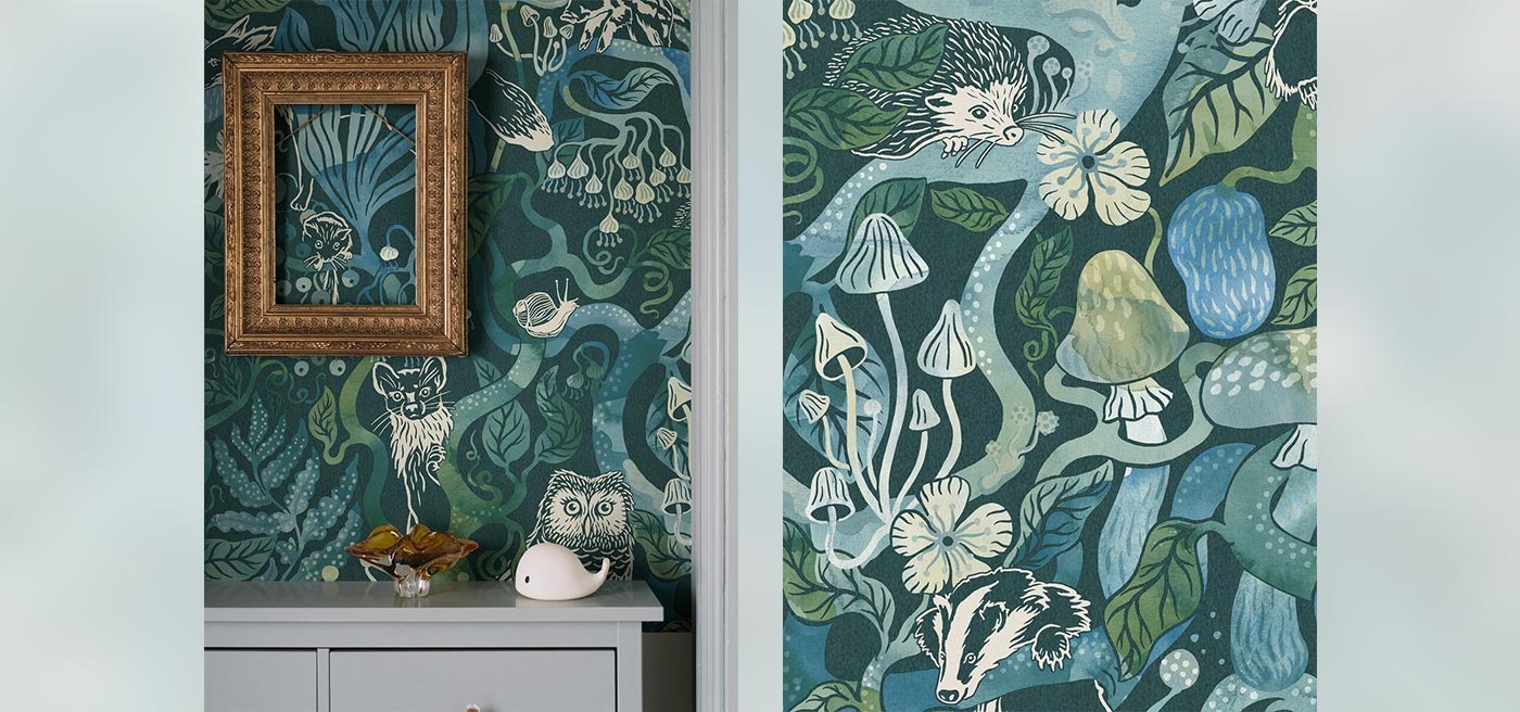 Welcome to a magical world. Magic Woods Grand dresses the room from floor to ceiling in a large, winding forest pattern full of joyful little friends. The wallpaper is an enlarged digital reprint of the Magic Woods children’s design – like an enchanting wall painting!