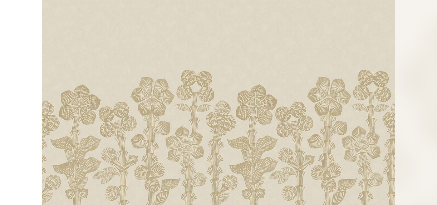 Storflax is a bright, playful mural wallpaper featuring a graphic pattern of pale yellow fantasy flowers stretching from the floor to the ceiling over a lightly textured, warm beige base.