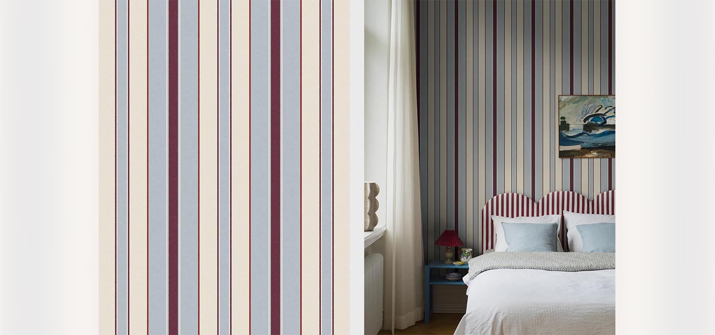 The striped wallpaper Stockholm Stripe is elegant and timeless. The pattern features stripes of varying widths, and the digital print includes a subtle paste-print effect – two details that give the otherwise strict design a more lively expression.