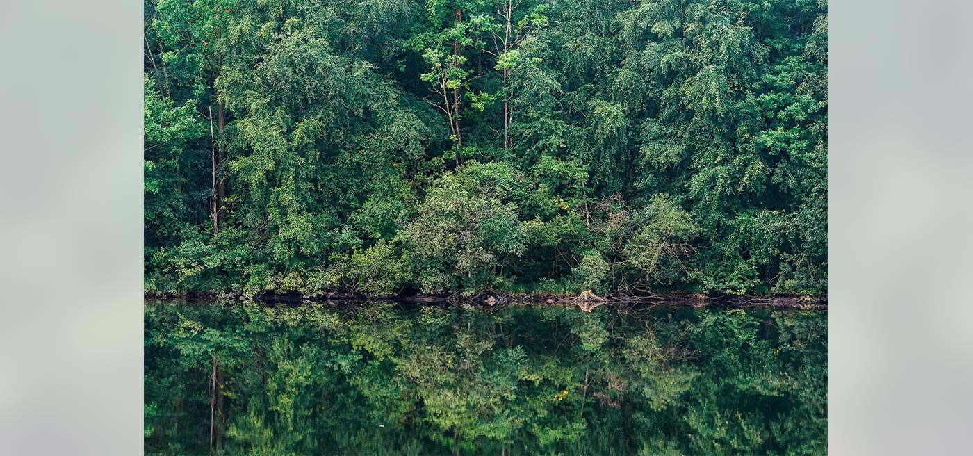 The deciduous trees stand gathered along the shoreline, dressed in the deep greenery of midsummer, their crowns quietly reflecting in the still water. This photo mural captures more than a place – it captures a sense of stillness and presence. Thanks to the varied textures of the foliage, the image gains depth and an almost graphic quality that works beautifully in both bedroom and living room.
