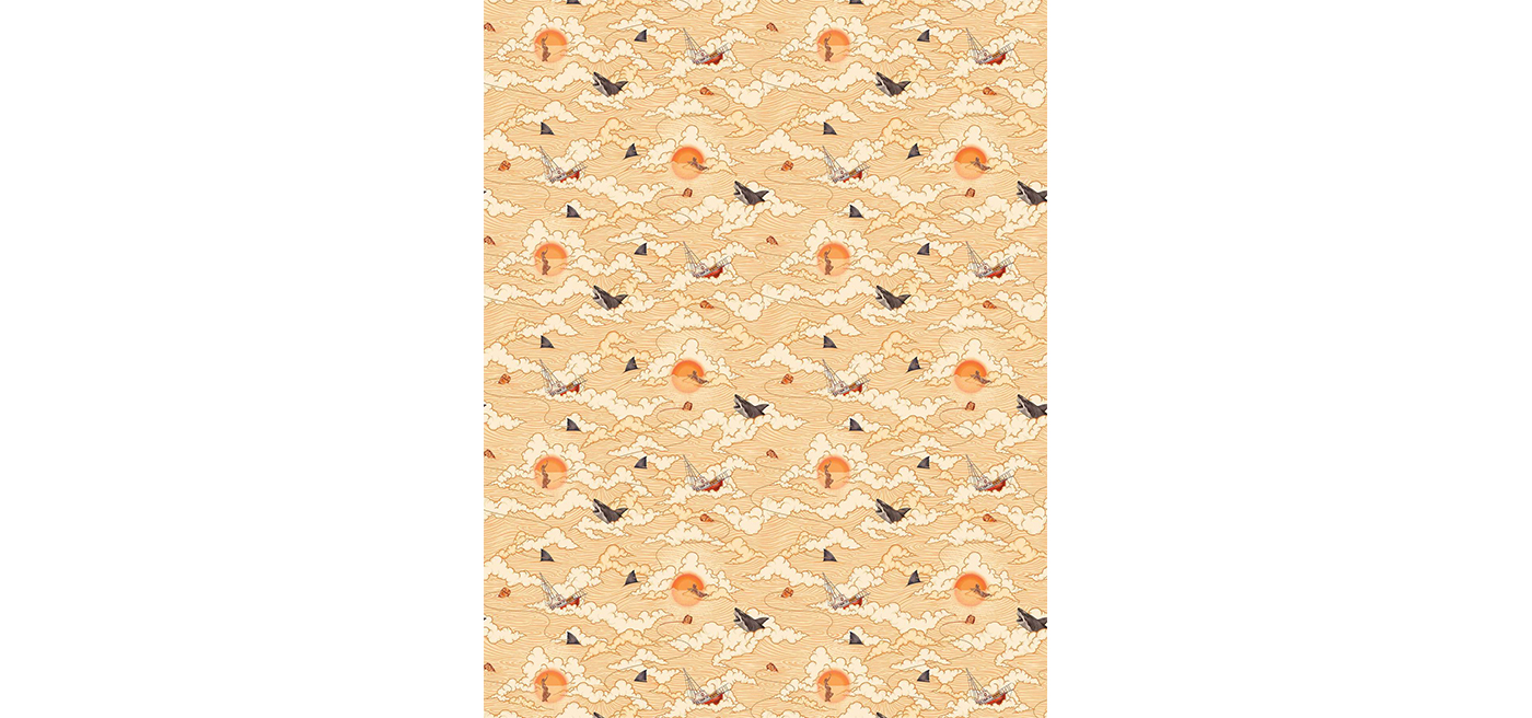 Inspired by the 1975 film Jaws, this seemingly picturesque beach scene hides the telltale signs of a midsummer night gone terribly awry… including the foreboding fin of our title antagonist. Designed by Lisel Jane Ashlock.