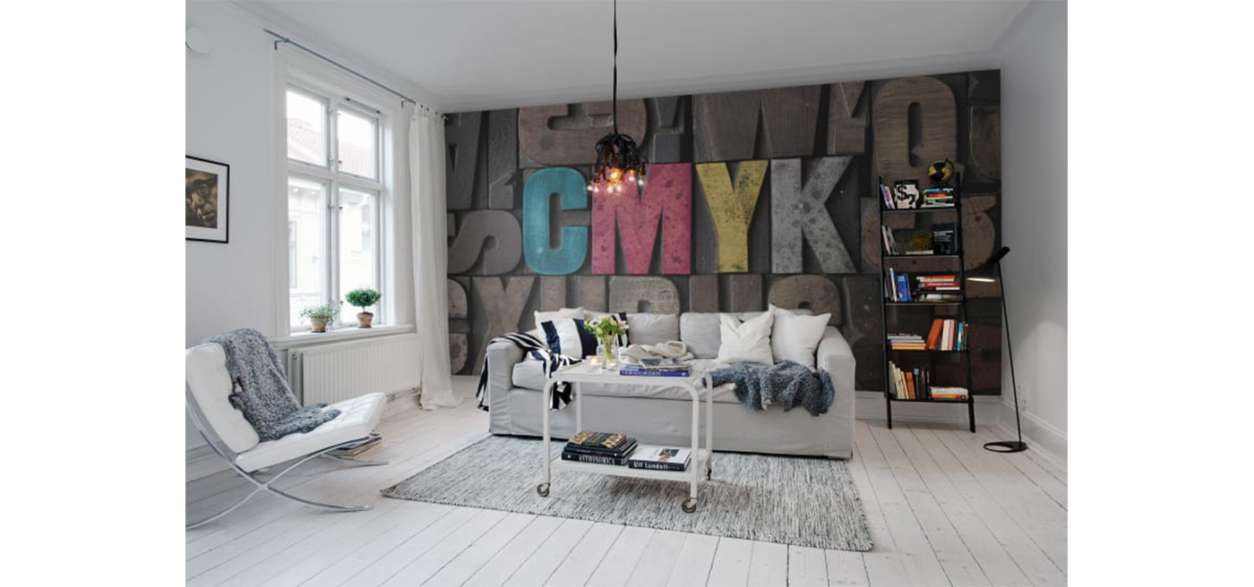 Give the room more character with these old types of wood. It really looks like the carved letters are coming out of the wallpaper.