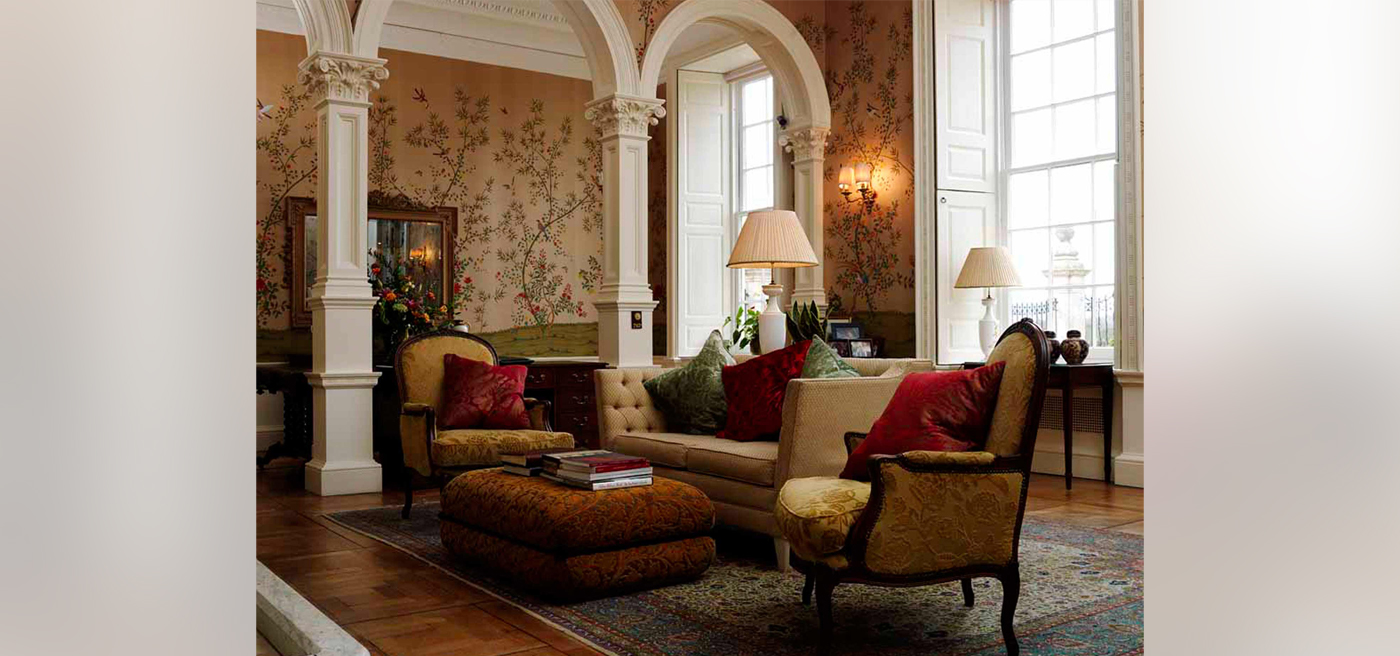 Sylvaner chinoiserie in burnish (12 carat gold). Sylvaner design is elegant and understated, most suitable as a backdrop in a room rather than a dominant feature.