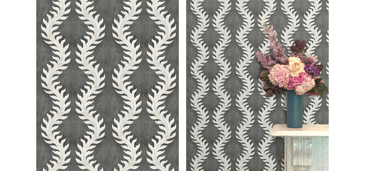 The Fern Wallpaper features a weaving in-and-out pattern that appeared in a lot of wallpaper designs in the 1700’s. The artist, Bethany Linz, decided to strip back the florals from the design and simply take the foundations as her inspiration. Like all of Bethany’s designs, she hand-painted first, creating a more organic pattern with rough textures. The design is both raw and timeless. Available in 6 colorways, including Beige, Salmon, Blue, Green, Grey and Pink, the Fern design is the artist’s most favorite of The French Collection.