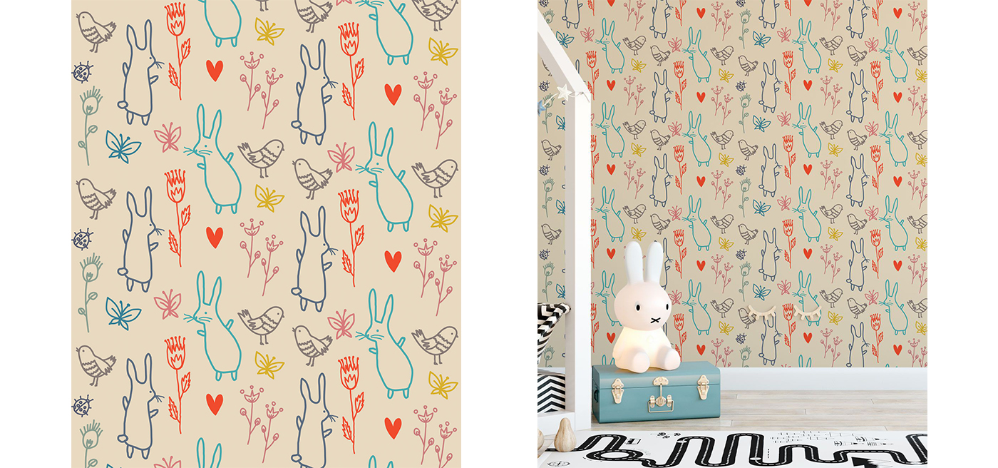 Summer Rabbits is a warm depiction of the life of our fluffy friends during the warmer months. Everybody’s out and about and enjoying each other’s company. These days, the trend in nursery design has moved toward more gender-neutral spaces. The focus is much more on good design, rather than traditional boy/girl Color palettes.