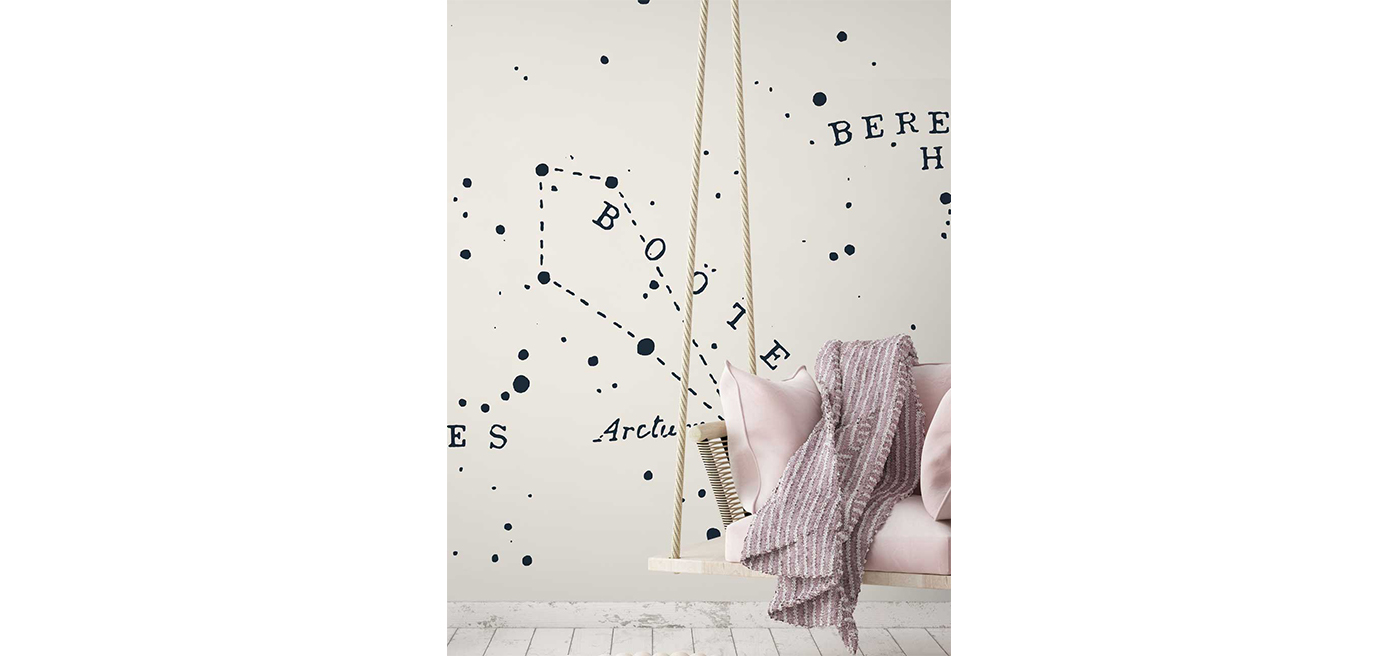 This totally charming tan starry night constellation wallpaper mural features famous constellations like the Great Bear. It’s a playful and fun star wallpaper mural that’d fit for anyone looking for fun bedroom wallpaper ideas.