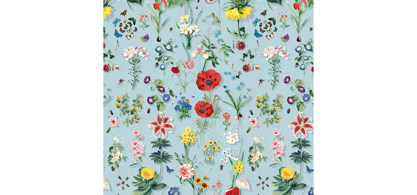 Inspired by the beauty of spring, this design features an assemblage of perfect blooms that looks perfectly primed to be picked off your walls.