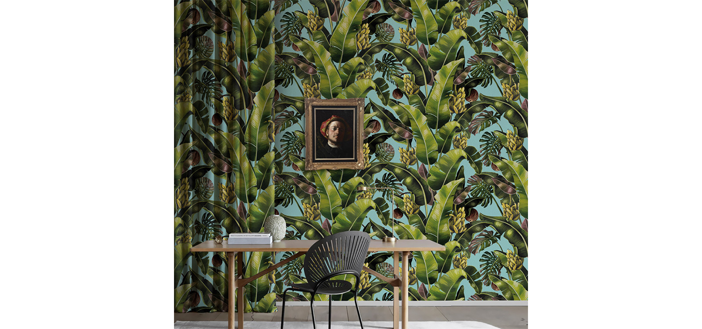 Our hand-painted big palm design featuring detailed lush palm leaves, bunches of delicious ripe bananas and playful hanging coconuts inspired by British Colonial heritage art with a distinct modern twist. Perfect for any discerning interior looking for a sophisticated tropical appearance.