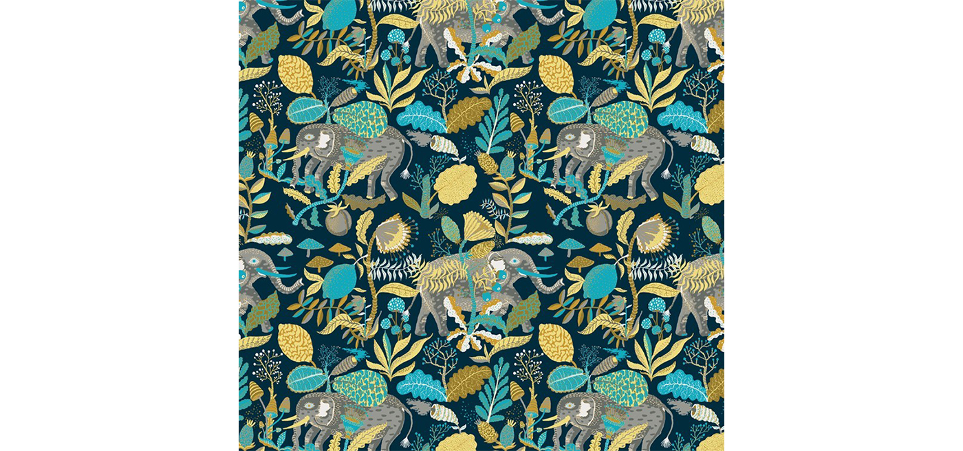A lush exotic design created to let your design senses march with the splendid elephants among the vast and intricate wilderness of the amazon.