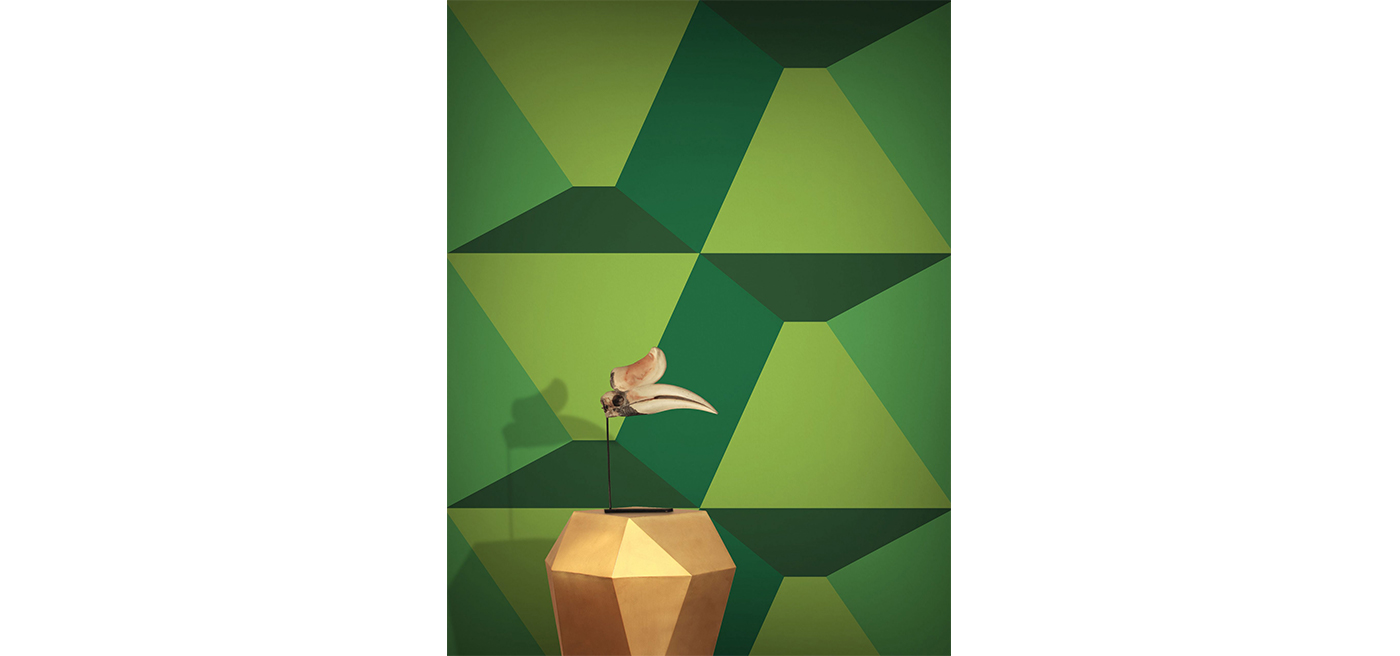 Polly Gone! wallpaper in leaf was designed by Liam McCormick and has a series of polygons with the colours and shapes of the 1970s to add fun and energy to a space. This green funky modern geometric wallpaper features bright colours and unique shapes for a modern feel.