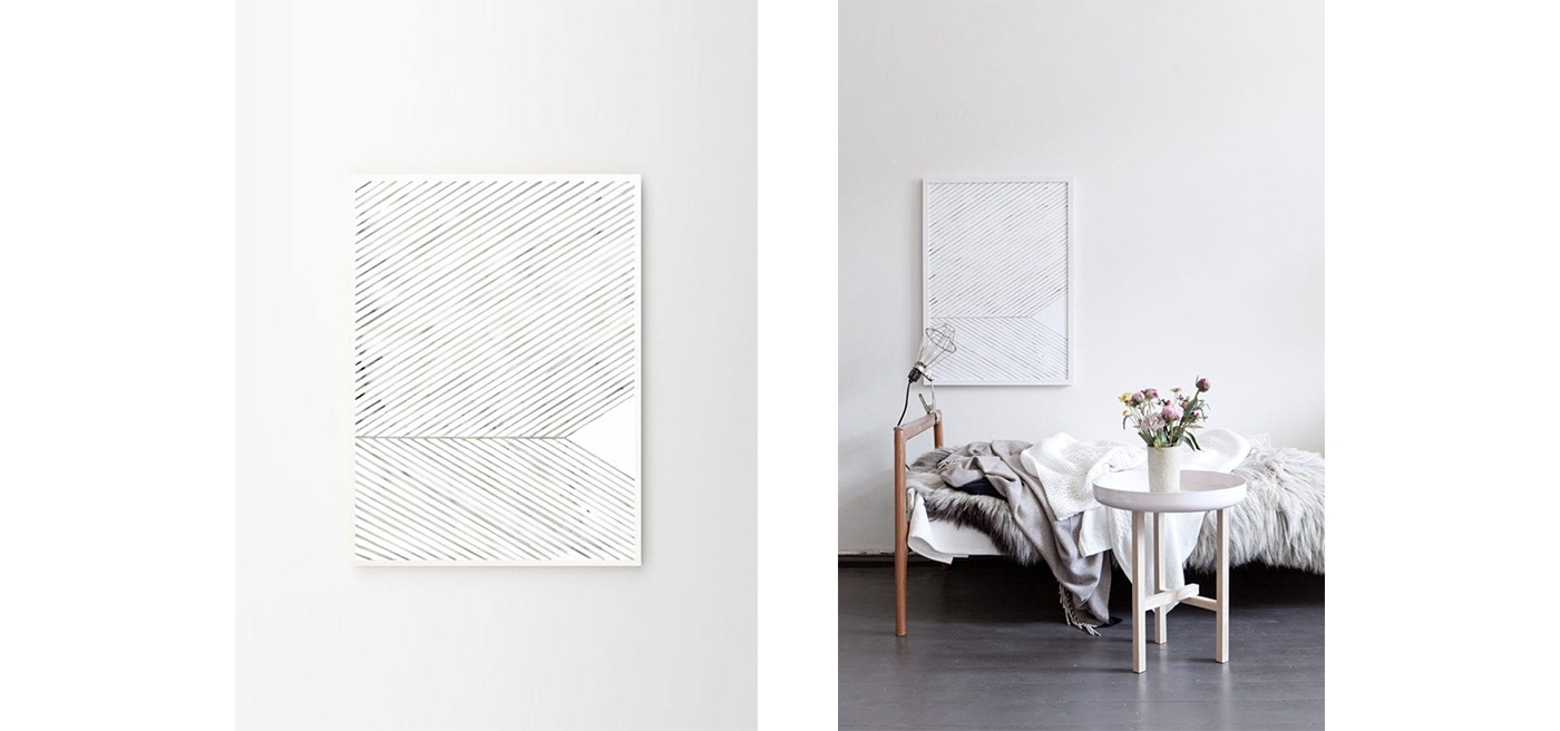 “Zooming in on the lines and patterns you will find in a leaf. Each leaf is a unique piece of art created by the nature. The organic watercolor shapes combined with the straight lines give a minimalistic and natural expression”.