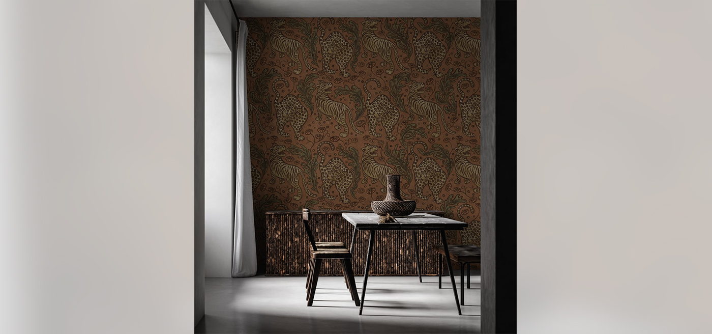 Venture into the vibrant wilderness with the Bold Tigers with a blue background. Featuring fierce tigers and leopards amidst lush floral settings, this wallpaper creates a captivating and energetic atmosphere, inspiring a sense of adventure and wonder in any space.