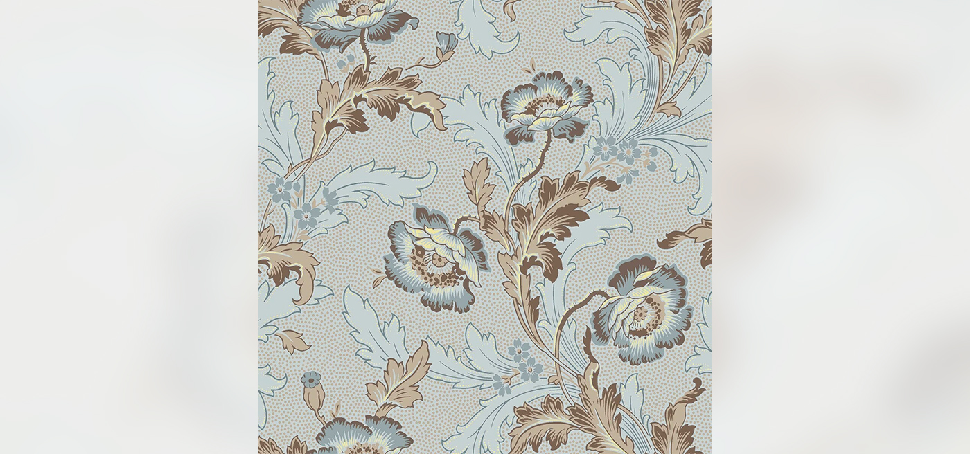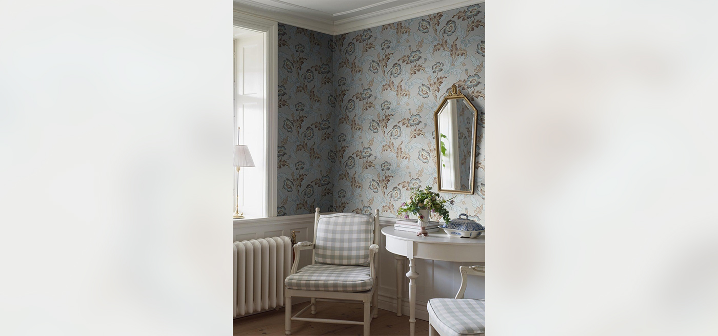 Coloured in soft green and beige tones with warm terracotta red accents, our Göteborg wallpaper creates a nostalgic expression on walls. The fleeting beauty of summer poppies are brought into permanent bloom, with delicate, winding stems and gracefully unfolding petals.
