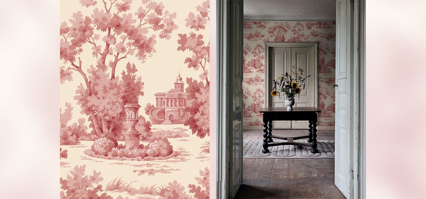 Grisaille is a light, decorative wallpaper with a stylized landscape motif in grey-beige tones on a white background. The word grisaille comes from the French gris (grey) and refers to the technique of building up layers of paint in different grey shades to create the illusion of depth – almost like a relief. Grisaille is a reprint of a historic pattern, custom fit to your wall.