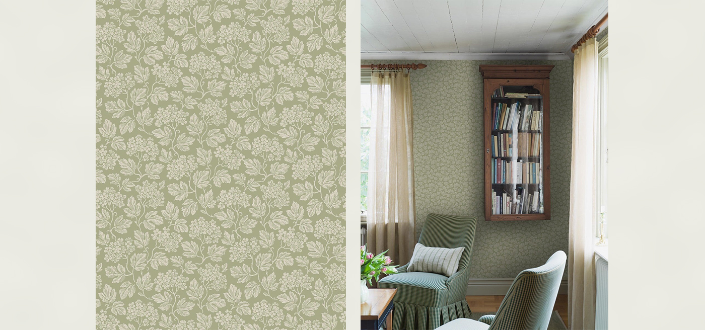 When spring is at its most beautiful, the hawthorn shrub bursts into bloom. And this enduring garden favourite has inspired the dense foliage design of our Hagtorn wallpaper.