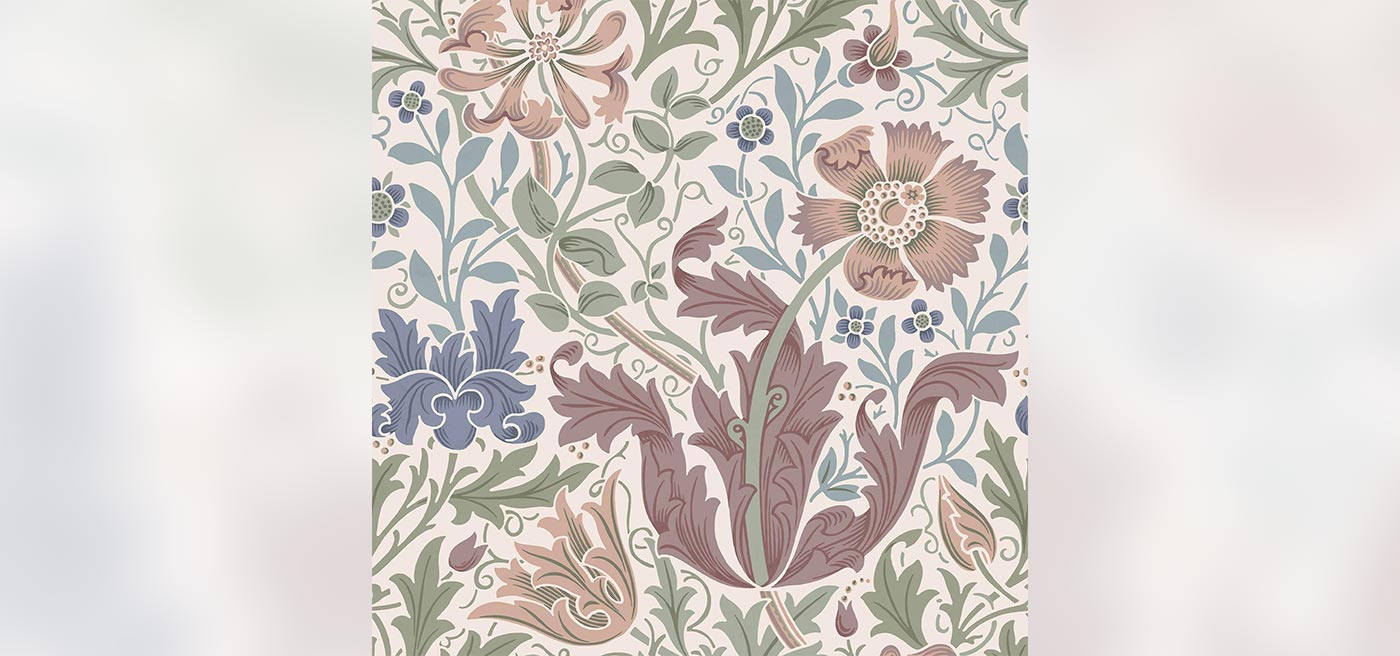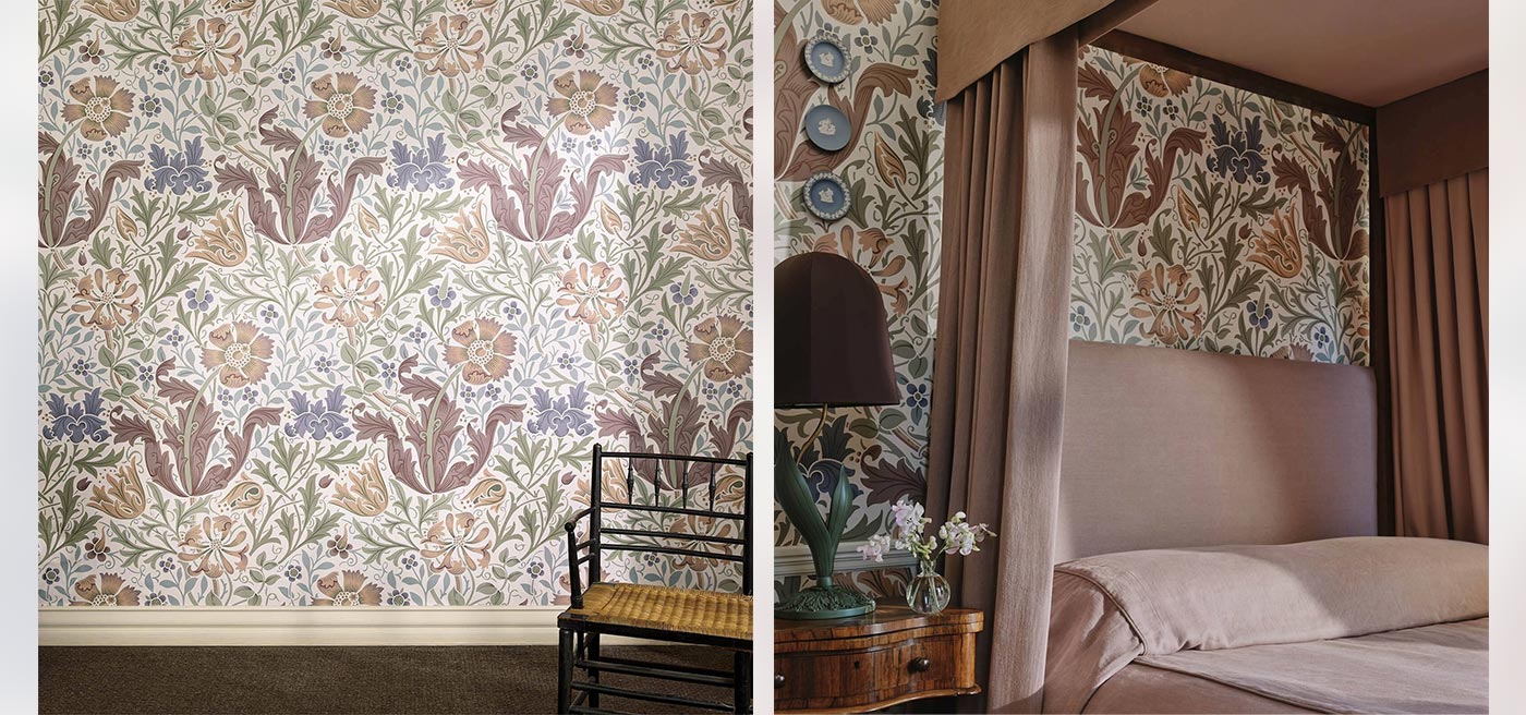 With larger-than-life climbing acanthus leaves, tulips and poppies, our modern retelling of a storied classic sees William Morris’ ‘Compton’ print transformed into modern surrealism.