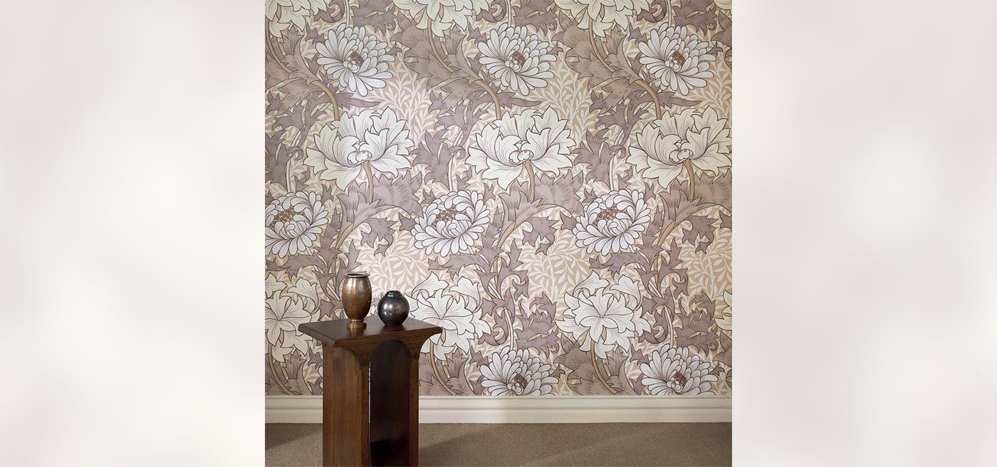 With larger-than-life climbing chrysanthemum blooms and winding foliage, our modern retelling of a storied classic sees William Morris’ ‘Chrysanthemum’ print transformed into modern surrealism.