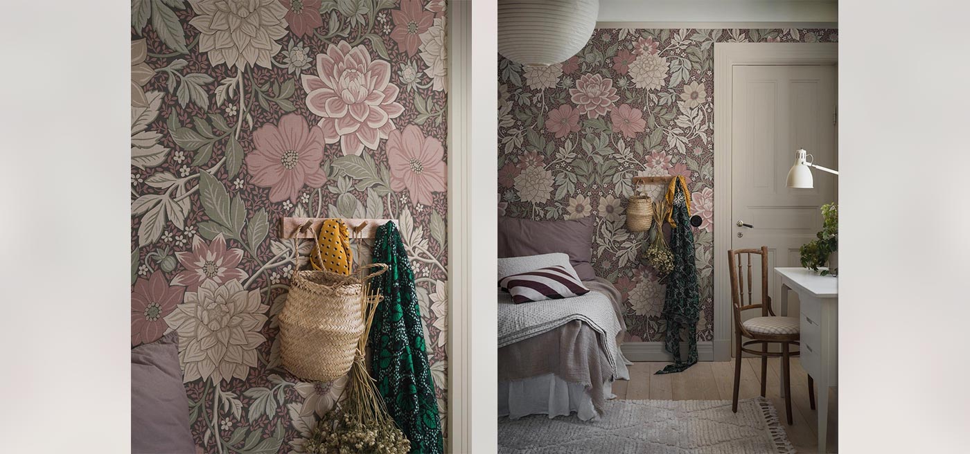 With Dahlia Garden Grand, you can dress your room in a winding sea of lush flowers! The wallpaper is an enlarged reprint of the popular Dahlia Garden, and at this scale the hand-painted floral pattern takes on a completely new character.