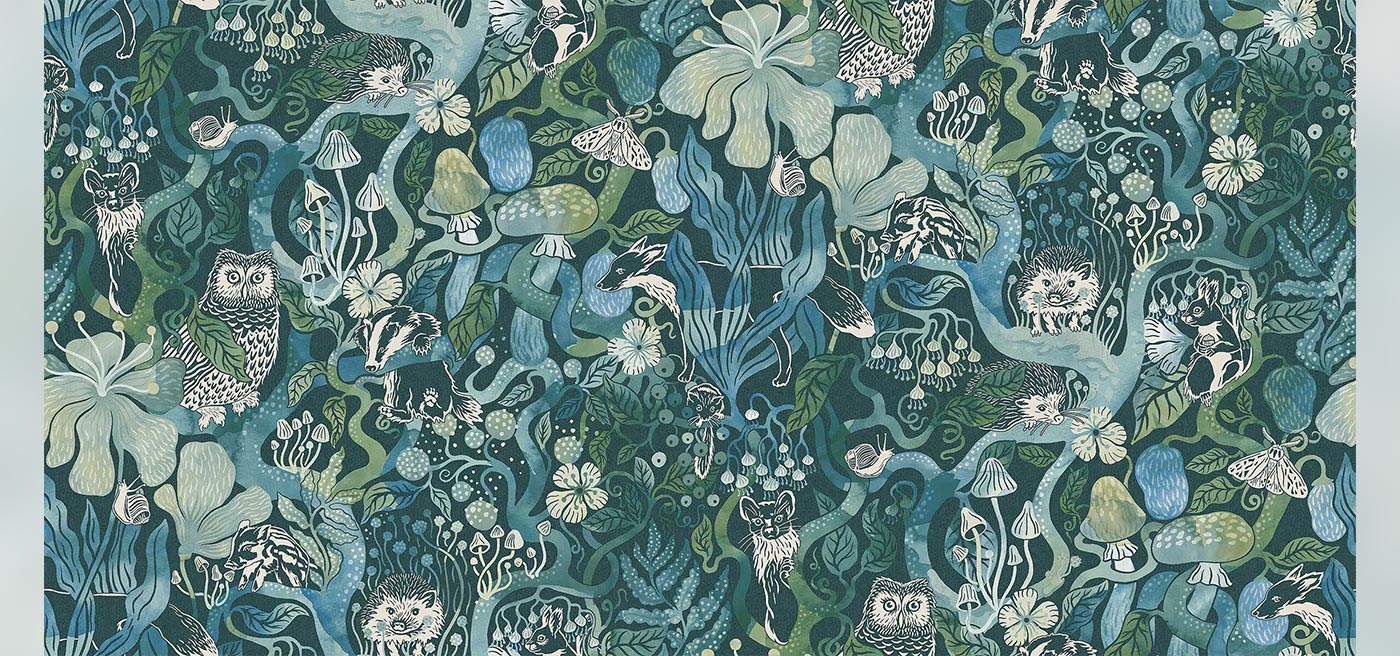 As the name suggests, Magic Woods Grand depicts a truly large, magical forest. Hedgehogs, foxes, barn owls, and squirrels – the lively pattern is full of playful friends and intricate details.