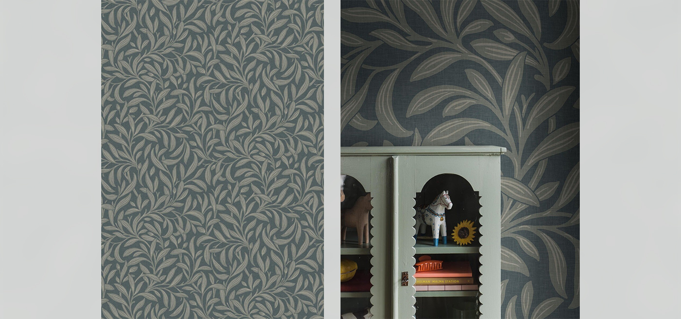 Vintergröna Grand’s tightly winding foliage creates a calm, embracing impression on your wall, enveloping the entire room in a harmonious feel. This Arts & Crafts-inspired motif is digitally printed on an extra-large scale and fully custom fit to your wall.