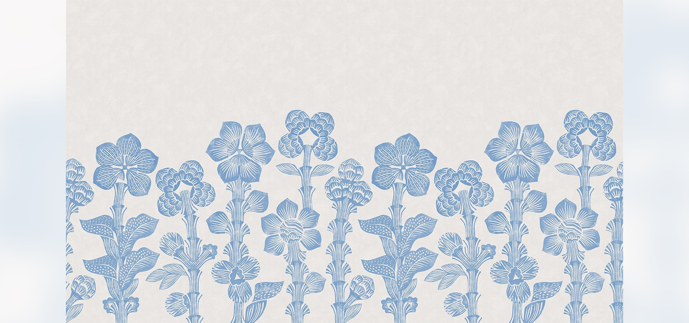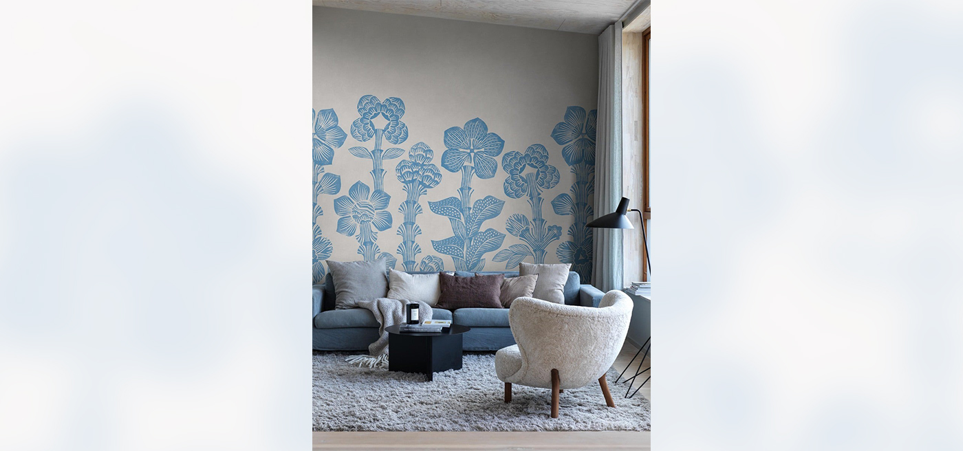 Across the mural wallpaper Storflax, majestic fantasy flowers stretch high towards the ceiling in a playful yet bold pattern, designed by Hanna Werning. The word “flax” can refer to the English term for linen but also to the Swedish word flax – meaning an unexpected stroke of luck that lifts us upward, forward, like a bird’s wings.